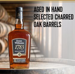 Evan Williams 1783 Small Batch honors the year that Evan Williams founded Kentucky’s First Distillery. This small batch Bourbon is pulled from less than 200 barrels. It’s extra-aged, bottled at 90 proof and uses the same sour mash process and traditional recipe made popular by our namesake, Evan Williams Black Label. Evan Williams 1783 Small Batch shares in the heritage of Evan Williams Black Label, which is the second largest selling brand of Kentucky Straight Bourbon Whiskey in the U.S., as both are named after Kentucky's first distiller. Evan Williams 1783 Small Batch is a brilliant honey color with aromas of oaky vanilla, sauteed butter, and sweet corn with a taste that's semi-sweet, oaky, and honeyed with a lean, off-dry, and regal finish. A 2024 TAG Global Spirits Awards and SIP Awards Double Gold winner and World Whiskies Awards and ASCOT Gold winner.