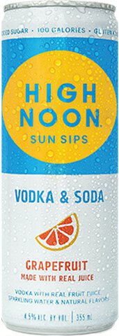 High Noon Grapefruit Vodka Hard Seltzer is made with real fruit juice, sparkling water and natural flavors. This crisp and refreshing drink only has 100 calories, no added sugar and it's gluten free. Enjoy straight from the can or served over ice.