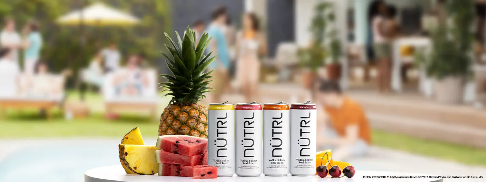 NUTRL Real Fruit Juice Vodka Seltzer is an easy-to-drink hard seltzer that combines vodka with a deliciously fruity twist. This spiked seltzer variety pack includes flavored hard seltzers of watermelon seltzer, orange seltzer, black cherry seltzer and pineapple seltzer. These alcoholic beverages are made with refreshingly simple, tasty and uncomplicated ingredients like vodka, seltzer water, and real fruit juice. It's that simple and it's even more refreshing. NUTRL Vodka Seltzer fruit drinks are gluten free with natural flavors, no added sugar, and 100 calories. These gluten free alcohol drinks have a 4.5% ABV and can be enjoyed cold or over ice right out of the can. No matter how you prefer it, these sugar free drinks are down right delicious, and the slim cans of NUTRL seltzer are easy to hold, store and transport wherever the party goes whether you need crisp alcohol beverages or simple zero sugar drinks that can be enjoyed year-round, no matter the season. Real Vodka. Real Juice. Enjoy NUTRL Responsibly.